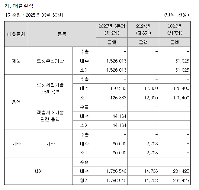 이터·플랫폼 사업 영역과 연관되어 보이며, 아직은 발사 서비스 자체에서 발생하는 매출은 제한적입니다.
