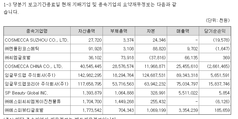 중국 법인 : 아직 큰 성과는 없지만, 시장규모가 워낙 크기 때문에 한한령 해제시 성장 잠재력이 큼